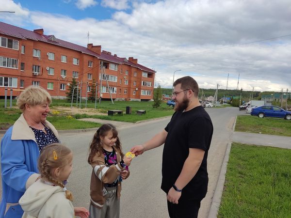 Всё дальше уходит от нас советское время, многое ушло безвозвратно, но осталась память, вещи, которые хранят милые сердцу мгновения. В наше время редко можно обнаружить в почтовом ящике поздравительную открытку. А раньше ни один праздник не обходился без почтового поздравления. Звёздный час поздравительных открыток остался в прошлом. Поэтому работники культуры решили поднять населению праздничный настрой и вручить им памятные эмблемы Первомая. С ребятами кружка «Умелые ручки», изготовили эмблемы 1 мая и в первомайский праздник пошли вручать населению. Вручая эмблемы, поздравляли с праздником и желали всем здоровья и мира. И конечно настроение было у всех приподнятое. Жители села благодарили за такой сюрприз.