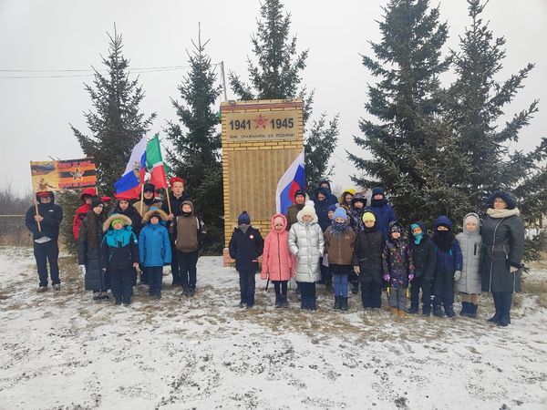 Пришедшие почтили память погибших героев минутой молчания и проведено возложение гирлянды к памятнику, погибшим воинам- землякам в годы Великой Отечественной войны.