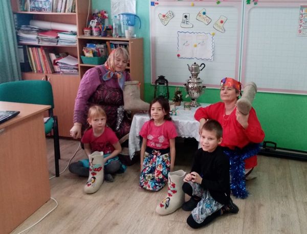 Во время развлечения дети узнали историю валенок на Руси, которую им рассказала хозяйка праздника Матрёна. А потом в гости к ребятам заглянул на сказочном коне Петрушка. Детишки с большим удовольствием пели песни, танцевали, играли, слушали загадки, а затем Матрёна с Петрушкой исполнили озорные частушки про валенки.