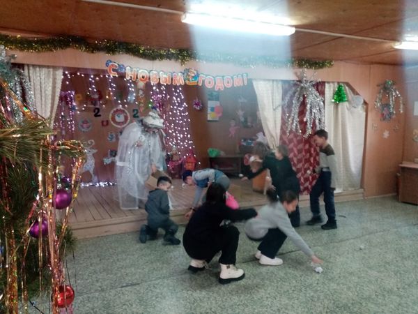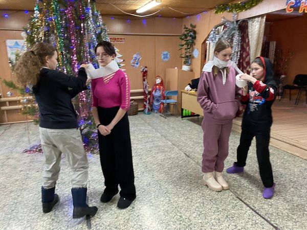 Далее каждый из ребят принял активное участие в различных конкурсах и играх: «Наряди елку», «Снежинки», «Морозное дыхание», «Приберись в избушке у Мороза», «Отгадай предметы в рукавицах», «Лопни шар», «Портрет Деда Мороза».