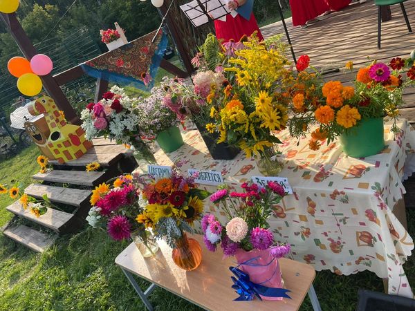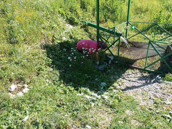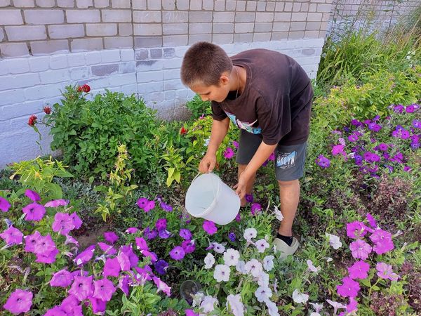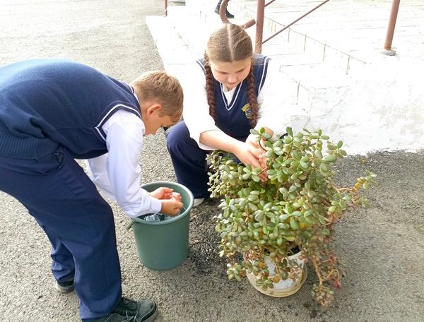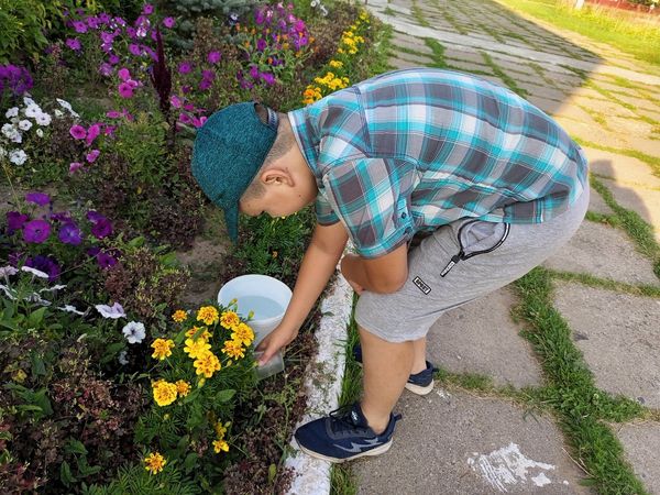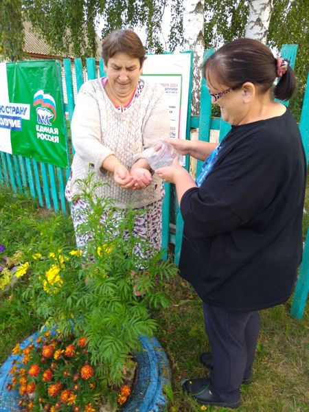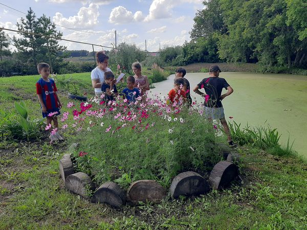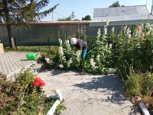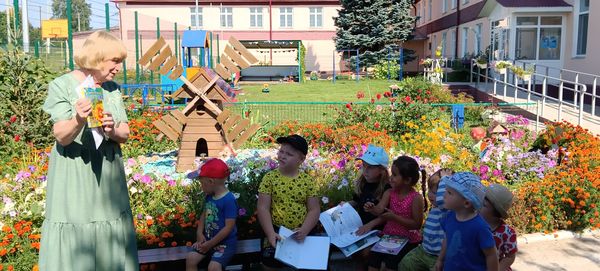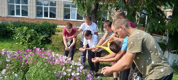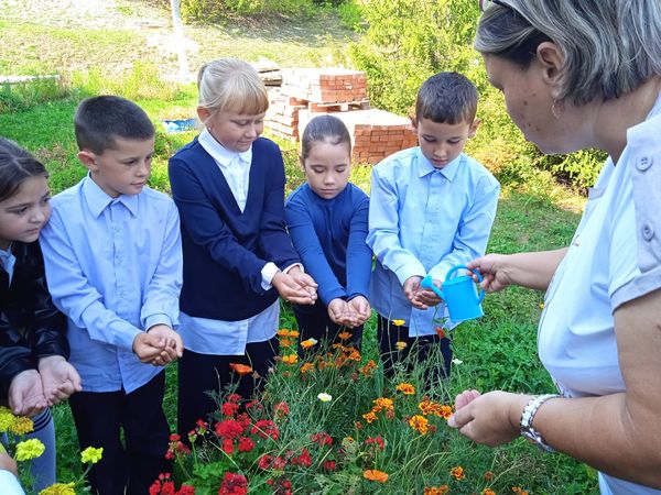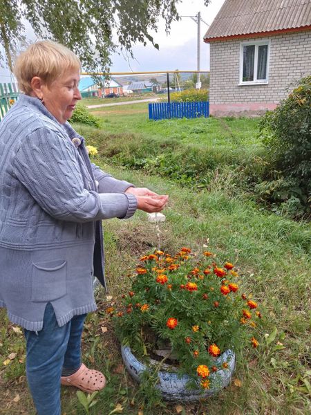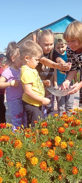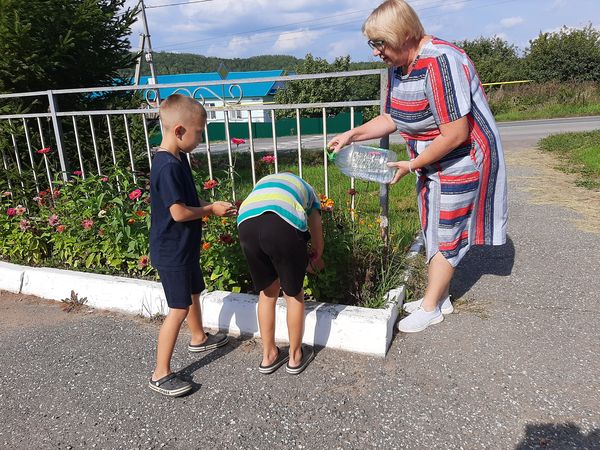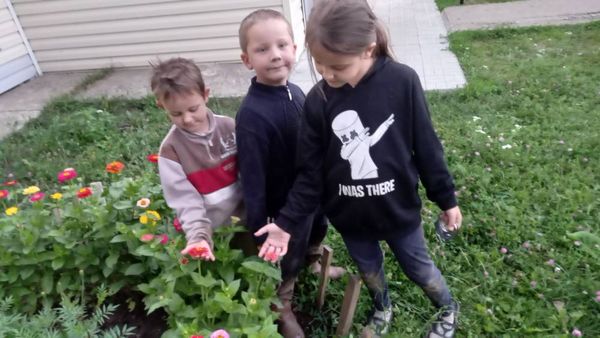 5 июня они очередной раз пропололи сорную траву, прорыхлили землю и подсадили в цветочную клумбу цветы бархатцев.