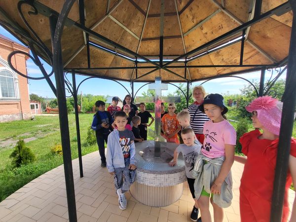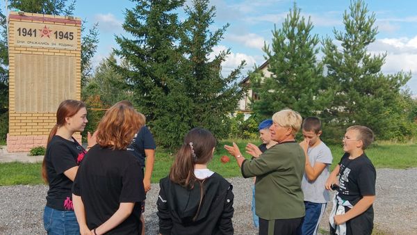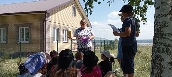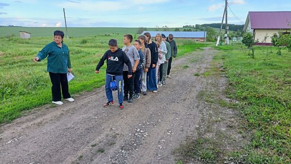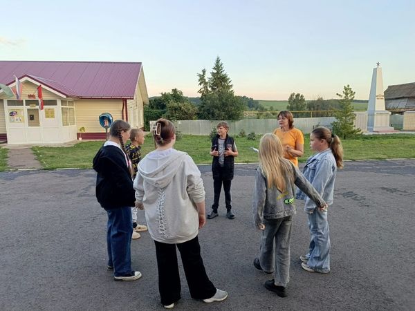 Затем совершили экскурсию по селу. Организаторы рассказали школьникам об истории села, почему улицы носят такие названия, о почетных жителях села.