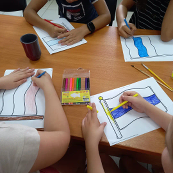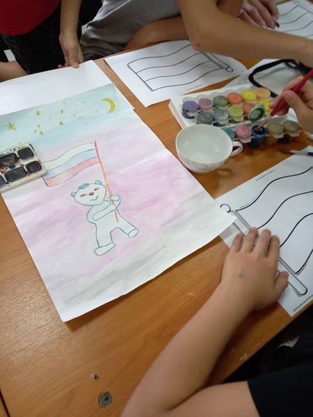 Встреча началась с рассказа о истории праздника. Дети получили много новой и интересной информации о государственной символике, гимне Российской Федерации, о происхождении герба, о значении цветов на Российском флаге. Также ребята узнали о неофициальных символах России: таких, как медведь, матрешка, Кремль, Красная площадь, самовар и др. Ребята дружно ответили на вопросы викторины «Моя Родина - Россия» и «Русские сказки». Активно приняли участие в игре «Я живу в России».