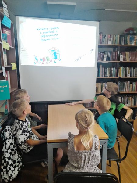 Библиотекарь рассказала, что такое грамотность, как самому стать грамотным, о том, как в мире ведется борьба с неграмотностью. Вниманию детей был представлен видеоролик «Международный день грамотности» о том, что никогда не стоит забывать о собственной грамотности, всегда необходимо ее повышать: учить правила, читать книги, тренировать память, развивать внимание, учить родной язык. Также на обозрение детей была представлена книжная выкладка "Мудрости начало", для которой были отобраны книги, предназначенные для усовершенствования качества грамотности: словари, справочники, энциклопедии. С большим удовольствием ребята приняли активное участие в викторине «Знатоки русского языка» и играх «Подбери синоним», «Вороний язык», «Доскажи словечко», «Назови одним словом», «Слоги потерялись», «Весёлая грамматика».
