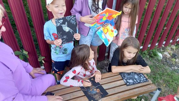 С помощью специального скребка мастерицы снимали верхний слой черного напыления, и в итоге получался необыкновенно красочный рисунок. Мероприятие было увлекательным, каждый ждал появление своего сюжета картины. Занятие таким творчеством не только интересное, но и полезное. Оно развивает мелкую моторику рук, помогает выплеснуть негатив и поднимет настроение, позволяет расслабиться и отвлечься от повседневных дел.