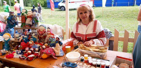 В ходе мастер-классов Наталья знакомила участников с приемами росписи фигурок, используя акриловые краски, с техникой плетения куклы из листьев кукурузы, рассказала, как делает заготовки, историю возникновения кукол, красивую легенду о том, почему у них нет лица…