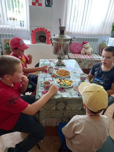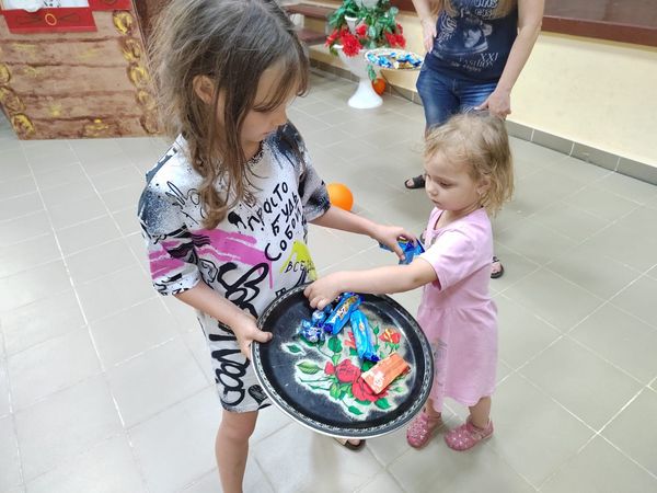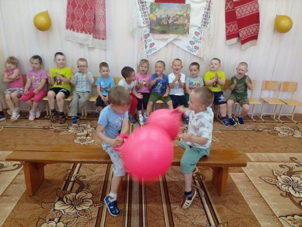 Дети с большим удовольствием участвовали в различных состязаниях - «Перетягивание», «Бег с яйцом в деревянной ложке», «Бой подушками», импровизированные скачки на лошадях и других, не менее активных конкурсах.