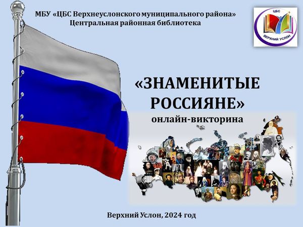 В преддверии этого дня Центральная районная библиотека приглашает Вас принять участие в патриотической онлайн - викторине «Знаменитые россияне», викторина посвящена известным россиянам, прославившим свою Отчизну в разные исторические эпохи, их объединила любовь к Родине, преданность России.