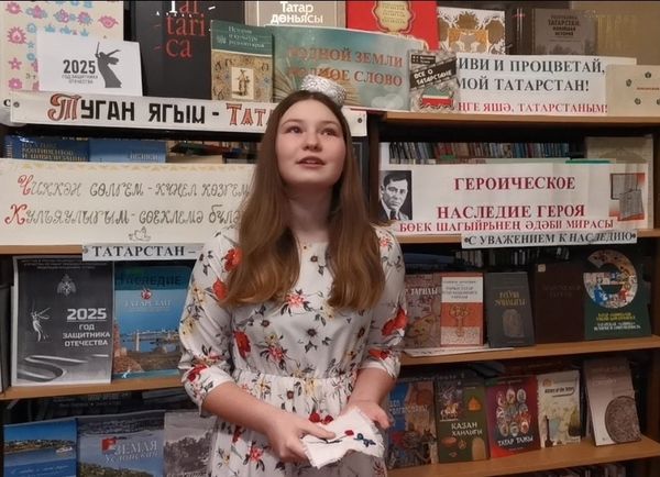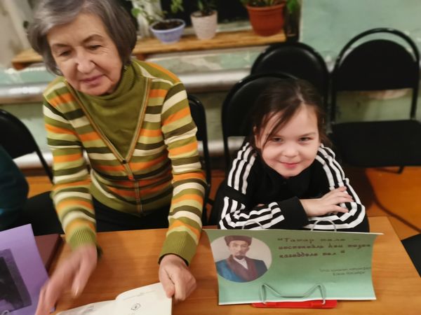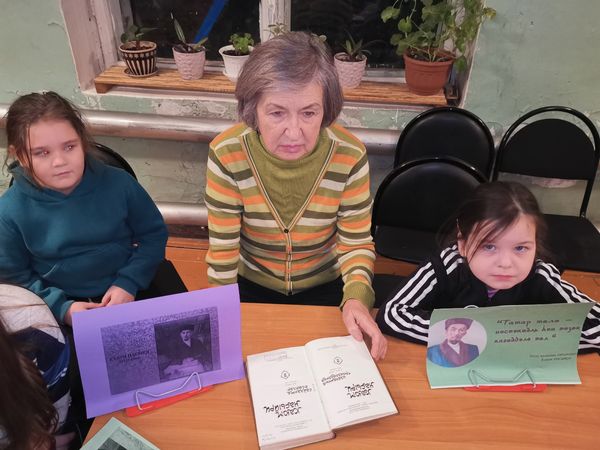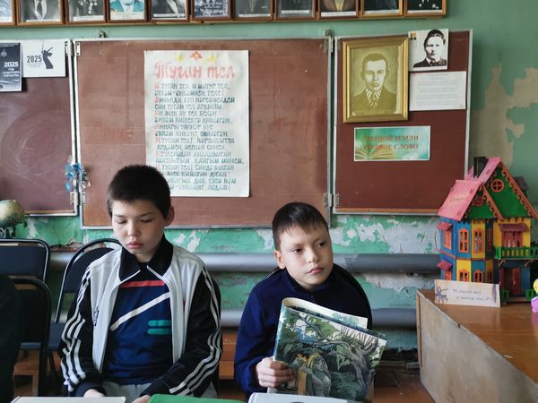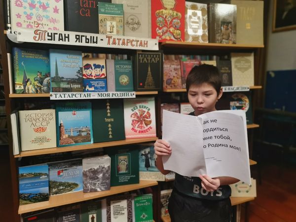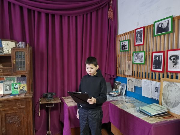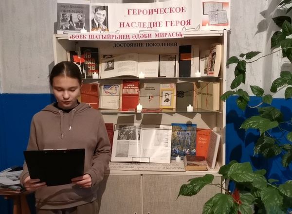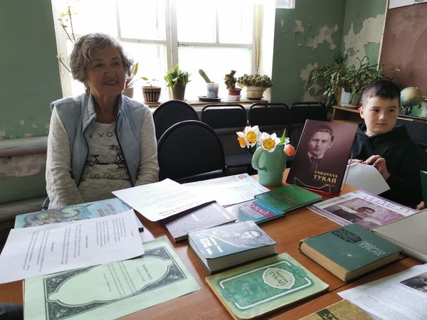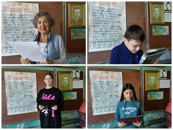 Ахмерова Мия подготовила презентацию, а Ахмеров Камиль прочёл стихотворение Рустема Кутуя "Мотив".
