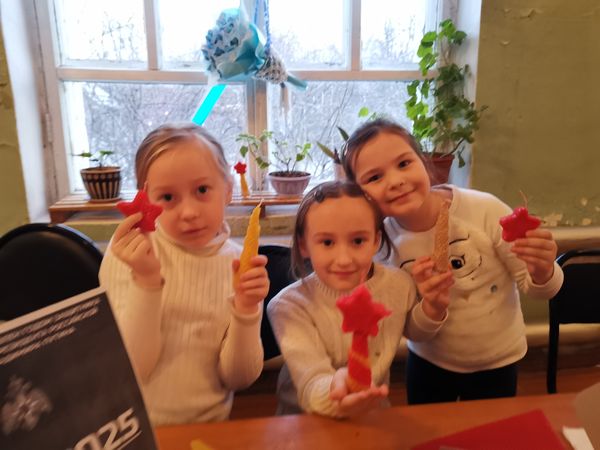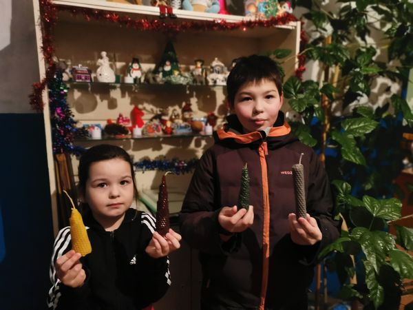 Мастер-класс получился очень атмосферным, ребята создали индивидуальное украшение для своего новогоднего интерьера. Вощина не что иное, как душистый пчелиный воск, очень приятный на ощупь. Свеча из данного сырья ровно горит, не коптит и издает приятный аромат.