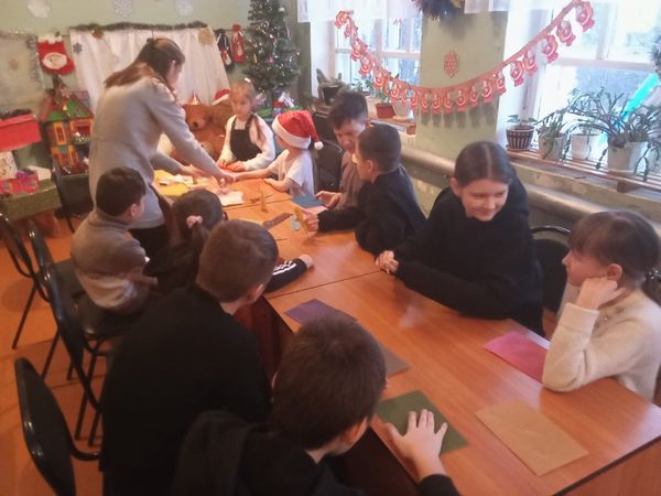 3.01.2025г. В дни зимних каникул для учащихся работники Шеланговского сельского Дома культуры и библиотеки провели урок творчества "Зимняя мозаика".