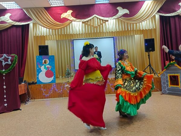 Жители и гости села собрались в зале Дома культуры, чтобы поздравить друг друга с наступившим Новым 2025 годом и конечно же потанцевать. Зал сверкал праздничными огнями, звучала новогодняя музыка.