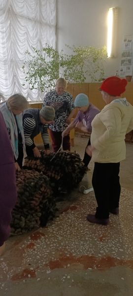 Группа активисток-волонтёров при Большемеминском сельском доме культуры плетёт маскировочные сети для российских военнослужащих – наших земляков, находящихся в зоне проведения специальной военной операции.