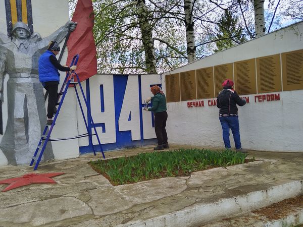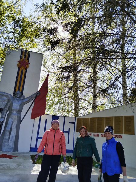 Ребята расчистили дорожку к памятнику, убирали снег на площадке, очистили мемориальную плиту, поправили цветы.