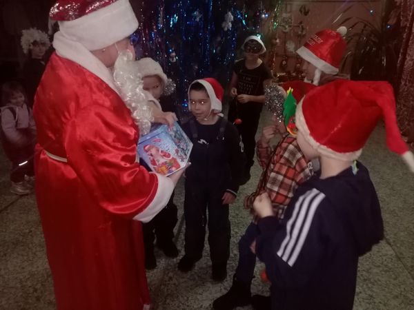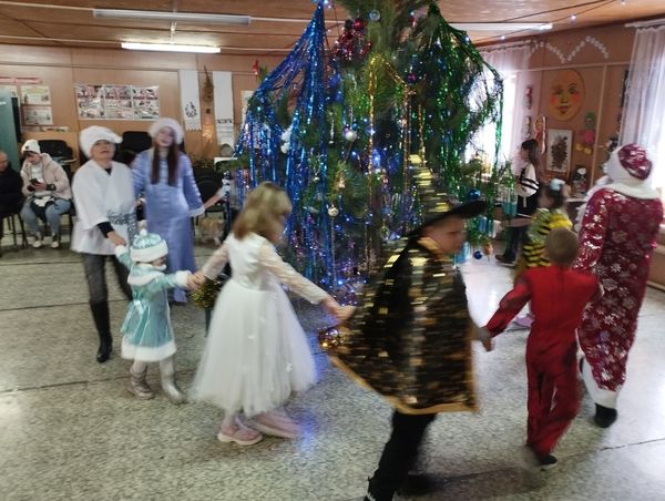 В уютном зале, украшенном сверкающими гирляндами и яркими игрушками, царила атмосфера праздника. Дети пришли на представление нарядные, весёлые, в костюмах. В разгар праздника появились Дед Мороз и Снегурочка. Ребята вместе с ними участвовали в костюмированном хороводе вокруг нарядной ёлки, разгадывали загадки, танцевали, выразительно читали рождественский стихи Дедушке Морозу. Не обошлось и без веселых подвижных игр: «Сложи снеговика», «Лови снежок», «Обгонялки», «Весёлый шар».