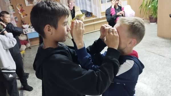 Ребятня отправилась в весёлый и увлекательный мир задора и веселья. Ведущая предложила детям начать с разминки «Смешинки», с задания посвящённого улыбкам, чтобы зарядить всех позитивом.