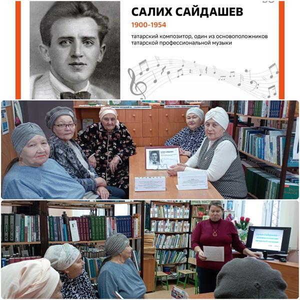 1 декабря в Матюшинской сельской библиотеке для членов клуба «Молоды душой» провели музыкальный арт -час «Неповторимы мелодии», посвященный 125 – летию композитора Салиха Сайдашева. Библиотекарь рассказала гостям мероприятия о жизни и творческой деятельности талантливого композитора. В ходе мероприятия прослушали фрагменты музыкальных произведений к драмам: «Галиябану», Голубая шаль», «Ил» и знаменитый «Марш Советской Армии».