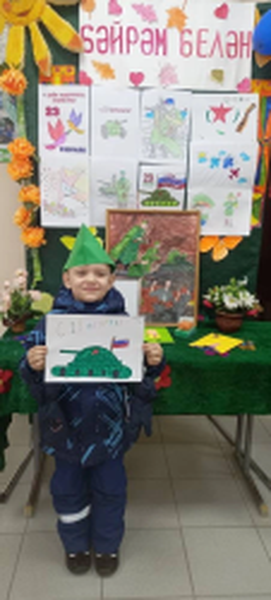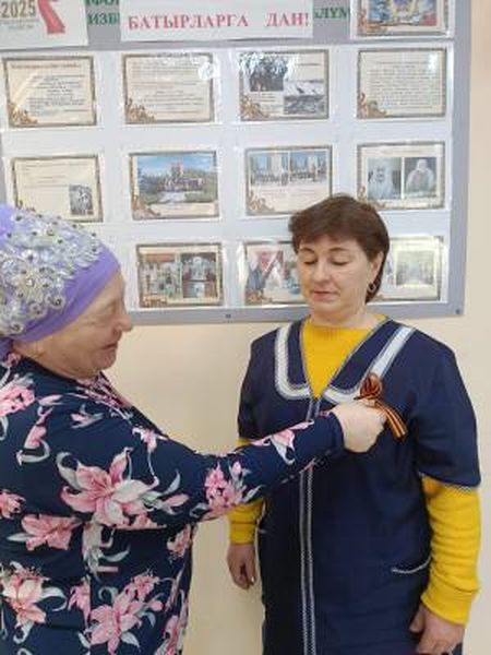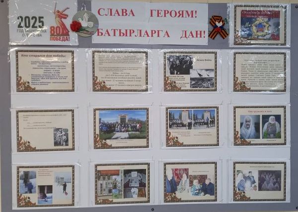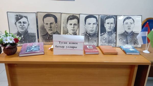 В рамках Года защитника Отечества в РФ заведующая Вахитовским СДК Гульназ Фаттахова оформила стенд «Слава героям!» (Батырлага дан!»)