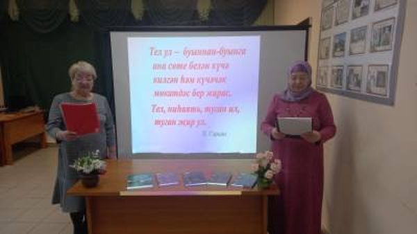 Вниманию гостей была представлена книжная выставка «Ана образы матур әдәбиятта”. На выставке представили книги известных татарских и русских писателей и поэтов, которые создавали в своих произведениях образ мамы – любящей и доброй, понимающей и всепрощающей, терпеливой, женственной и нежной, мужественной и стойкой в горе, открытой и щедрой в радости, окружающей нас теплотой и заботой. Участники вспомнили стихи о маме из своего детства, книги которые читали своим детям, поделились воспоминаниями о своих мамах.