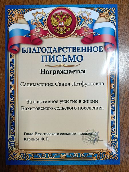 Завершая собрание, глава сельского поселения Ф,Р.Каримов выразил благодарность жителям за поддержку и сотрудничество. Сход граждан же закончился приятным событием: активные жителей села получили Благодарственные письма.