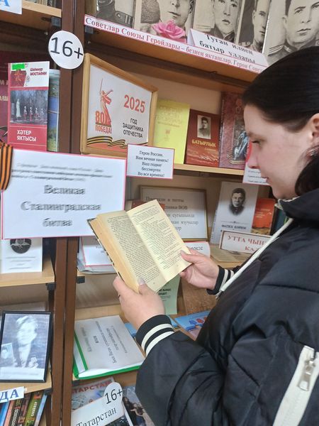 Библиотекарь рассказала об истории праздника, о героизме народа на полях сражений, о воинской доблести, о бессмертном подвиге советских людей и о тех, кто не вернулся с войны, ценой своей жизни защищая своё Отечество, чьи имена остались неизвестными. Участники мероприятий смогли ознакомиться с книгами о войне на выставке «Солдат моей Родины», »Минем илемнең горур солдаты”. Завершился мероприятие минутой молчания, которая станет выражением глубокой признательности и уважения к павшим героям, чьи подвиги навсегда останутся символом стойкости и мужества русского народа.