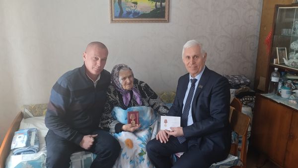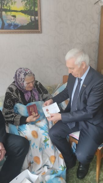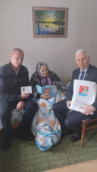 12.02.2025 года Заместитель Главы Верхнеуслонского муниципального района Осянин Сергей Викторович и Глава Введенско-Слободского сельского поселения Морозов Дмитрий Владимирович посетили труженицу тыла Петрову Екатерину Петровну жительницу деревни Петропавловская Слобода и в соответствии с Указом Президента Российской Федерации наградили ее юбилейной медалью «80 лет Победы в Великой Отечественной войне 1941-1945 гг.» Они пожелали ей здоровья, долгих лет жизни, внимания и заботы близких людей. Также они подарили ей продовольственный набор.
