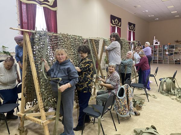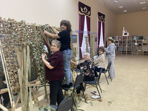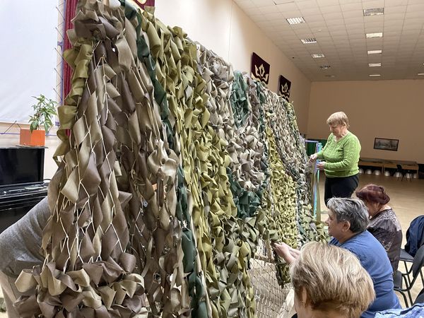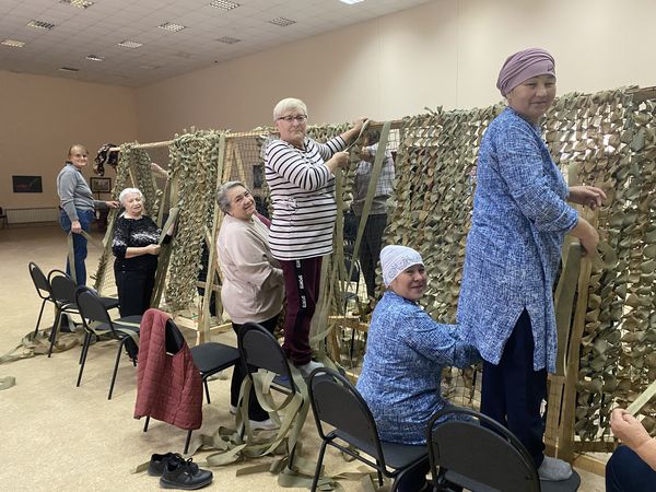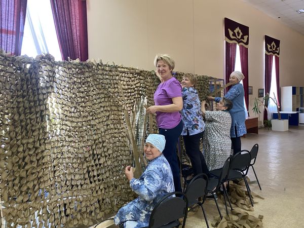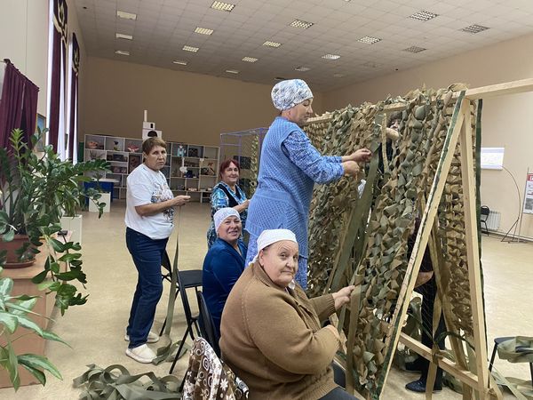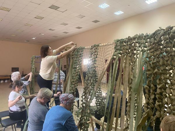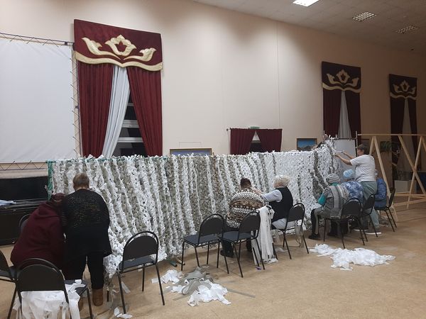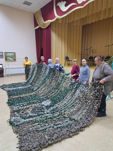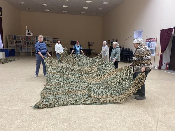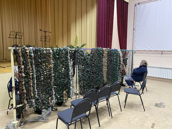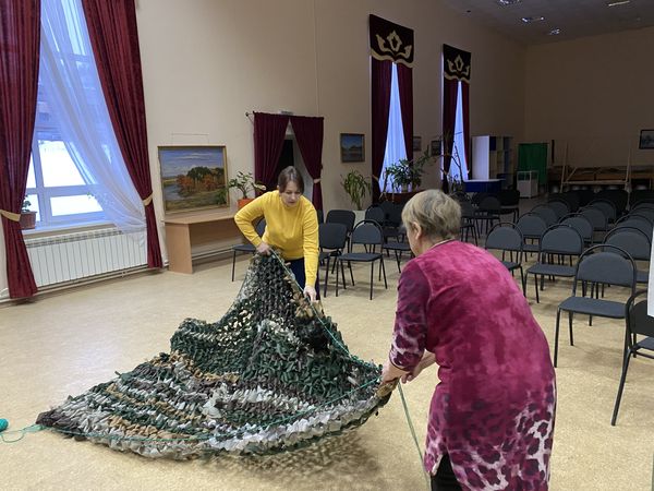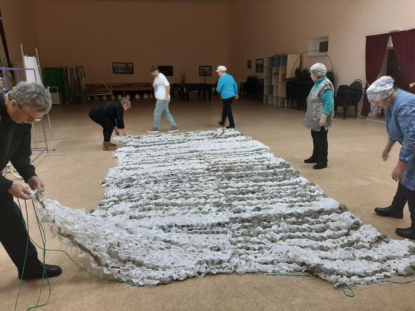 Маскировочная сеть для солдата, который находится на позиции, не менее важна, чем бронежилет или каска. Процесс это трудоёмкий, материалы нужны специальные, ткань и сети дорогие. Но переживающих за ребят, которые сейчас находятся на фронте, неравнодушных женщин это не останавливает. Одновременно работают несколько человек: кто-то ленту режет, кто-то плетёт, кто-то натягивает, потом вместе вплетают веревку для стягивания сети – все работают одной дружной командой. «Мы рады помогать нашим воинам. Надеемся, что это наш маленький вклад в большую победу! В такое сложное время для страны очень важно сплотиться, и только вместе мы сможем приблизить её. Даже такая вещь, как сплетённая маскировочная сеть, тем более с верой и любовью, может спасти дорогостоящую военную технику, и, главное, бесценные человеческие жизни» — говорят мастерицы.