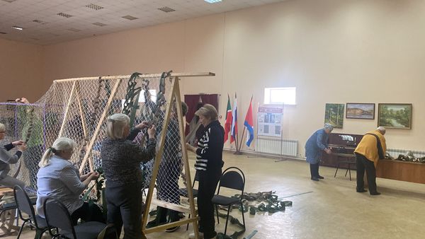 Скоро состоится очередная отправка гуманитарного груза в зону СВО от Верхнеуслонского района РТ. Жители Введенско-Слободского поселения плетут маскировочные сети для военнослужащих – наших земляков, находящихся в зоне проведения специальной военной операции.