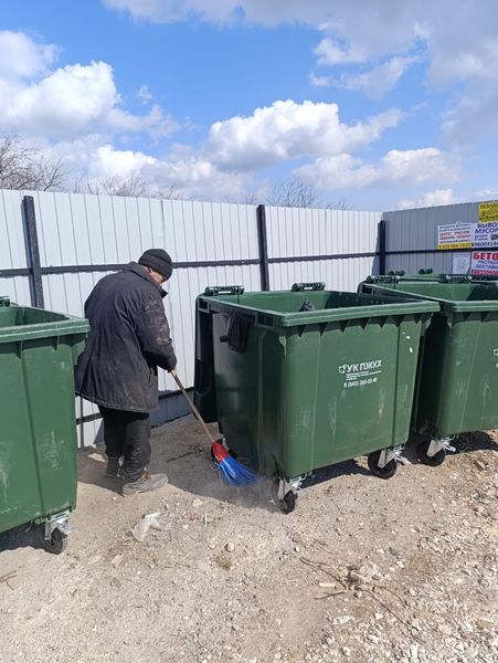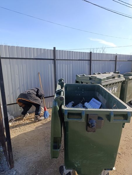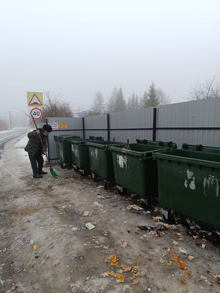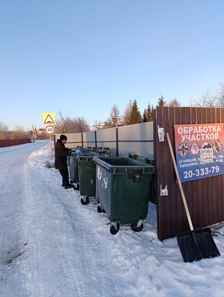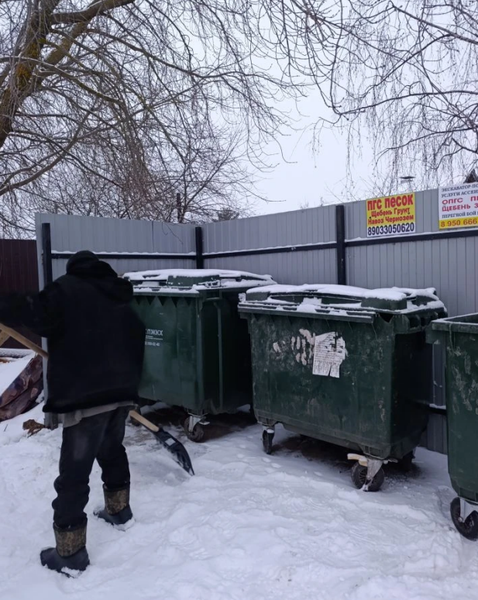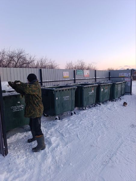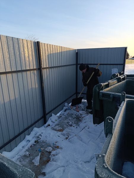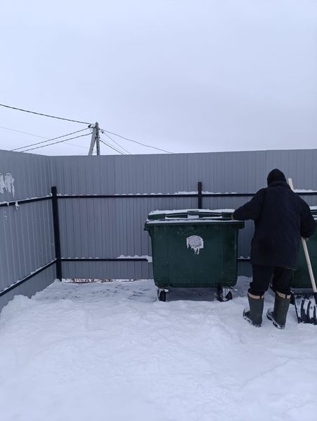 7 февраля 2025 г.провели очистку контейнерных площадок от снега и провели под борТКО , который оставляют жители около контейнеров.