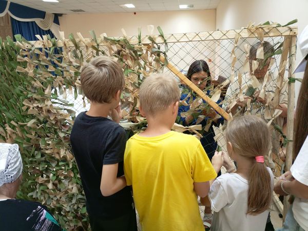 В начале мероприятия все его участники приняли активное участие в изготовлении маскировочных сетей, а потом в конкурсной программе.