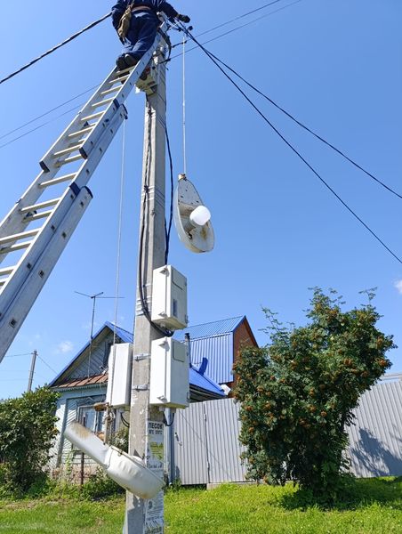В селе Нижний Услон, в целях сокращения финансовых затрат на эксплуатацию уличного освещения, по инициативе Главы Верхнеуслонского муниципального района Е.А.Варакина компанией ООО" Мегасеть" в период 3-4 декабря 2025г.произвели замену ламп ДРЛ мощностью от 250до400 Вт в количестве 30 шт., на энергосберегающие мощностью 50 Вт.Проведенная работа должна значительно повысить энергоэффективность уличного освещения.