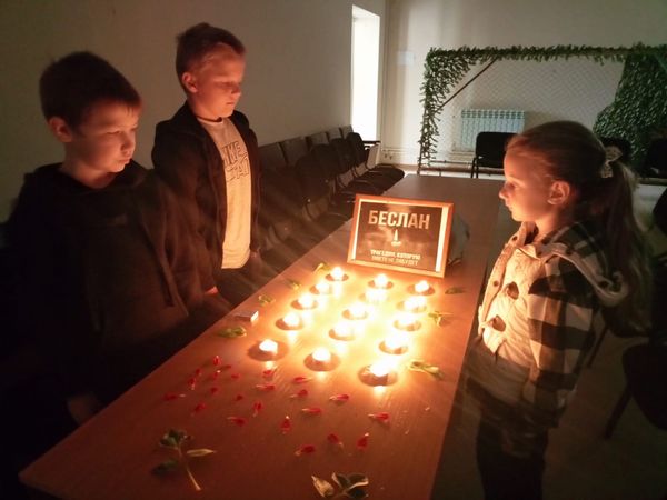 В конце мероприятия провели акцию " Свеча памяти" и завершили минутой молчания.