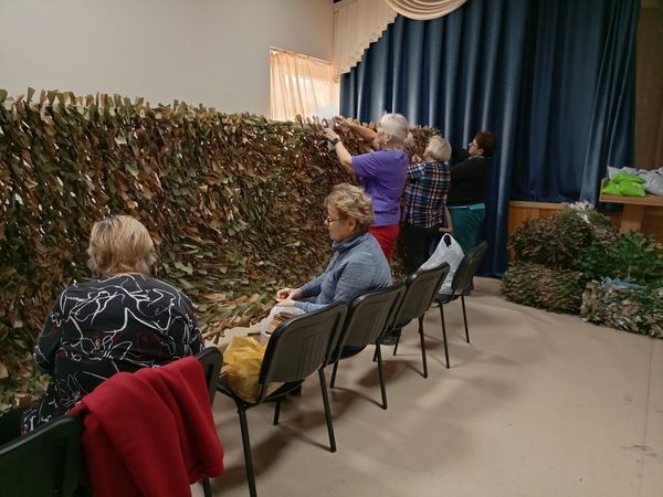 В Нижнеуслонском СДК сначала года активно проводится акция " Своих не бросаем!"по изготовлению маскировочных сетей для ребят СВО.