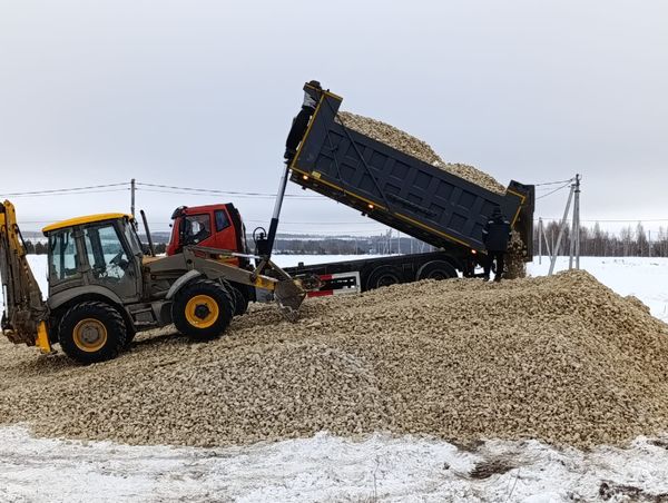8 февраля 2025г.компания "Черника Таун" приступили к заготовке строительных материалов для строительства внутрипоселковых дорог на территории коттеджного поселка.