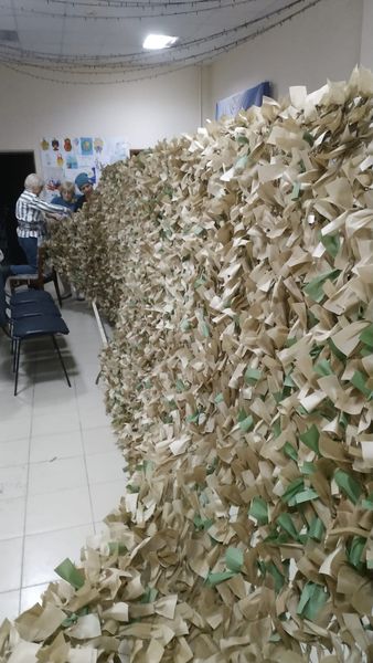За день одну сеть плетут волонтеры Нижнеуслонского сельского поселения.Спасибо большое всем кто принимает участие в изготовлении маскировочных сетей!