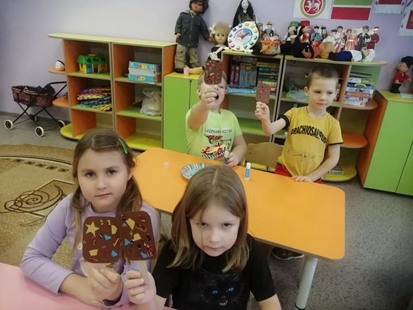 Сегодня в старшей разновозрастной группе МБДОУ «Нижнеуслонский детский сад» прошло тематическое занятие «День эскимо». Воспитатель Гаврилова Н.Н. познакомила детей с историей происхождения этого удивительного мороженого. Ребята узнали, что такое мороженое, из чего оно изготавливается, какие виды мороженого бывают, можно ли заболеть, если съесть мороженое. В ходе занятия дети с удовольствием приготовили из цветного картона шоколадное мороженое, украсили его. Ребята с особым усердием творили каждый свое, неповторимое эскимо.