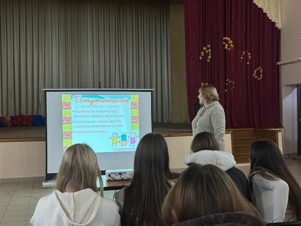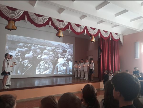 Советник по воспитанию и взаимодействию с детскими общественными объединениями Лужаева Н.В. и педагог-организатор Лашнева Е.А. провели в 7 классе урок мужества, в ходе которого показали документальный фильм "С чего все начиналось". Ребята узнали историю Холокоста, о том, что концентрационные лагеря – одни из самых страшных творений фашистов.