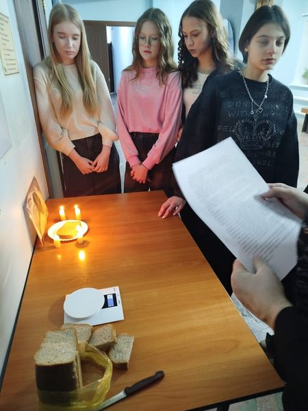 Ребята посмотрели презентацию "Дети во время блокады Ленинграда", прочитали стихи. Обучающиеся услышали историю о том, как 125 граммов хлеба в сутки, часто испечённого из самых неожиданных ингредиентов, стали символом жизни для осаждённого города. Ребята взвешивали кусочки хлеба, внимательно рассматривая каждый и удивляясь стойкости и силе духа нашего народа.