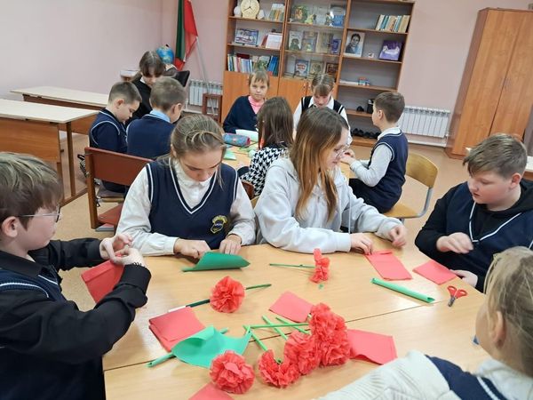 Особое внимание привлекла традиционная всероссийская акция «Красная гвоздика». Участники мероприятия узнали историю возникновения символа памяти — красной гвоздику, представляющей благодарность ветеранам Великой Отечественной войны и погибшим солдатам, чьи имена остались неизвестными. Затем своими руками сделали гвоздики из цветных салфеток и бумаги.