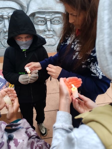 В память о погибших в конце урока мужества ребята сделали свечи и почтили жертв Холокоста минутой молчания.
