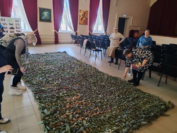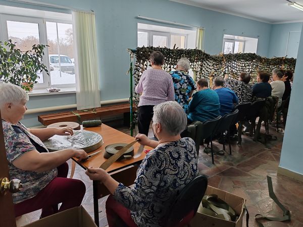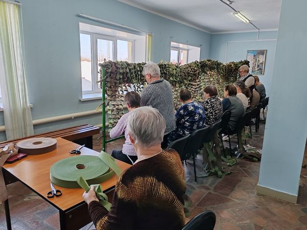 На этой неделе были сплетены очередные маскировочные сети. Благодаря нашим пенсионерам-волонтёрам и их финансовой помощи были закуплены необходимые материалы: 5 основ для плетения, 2 упаковки шнуров для обвязки и 5 бобин маскировочной ленты. За каждым узелком — мысль о безопасности солдата. За каждой купленной бобиной — желание людей старшего поколения защитить тех, кто сейчас на передовой. Это не просто гуманитарная помощь, это тепло родных рук, которое согревает в окопах наших солдат.