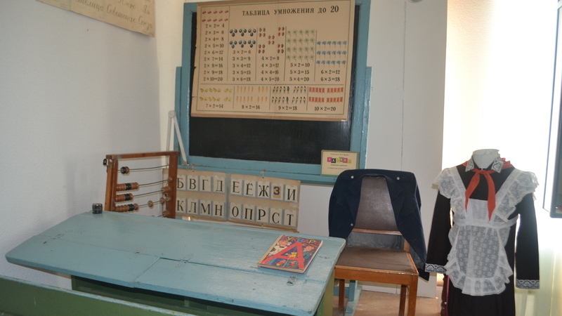 Экспозициянең иң мөһим нәрсәләре – уку әсбаплары, глобус, кызларның мәктәп формасы, иске уку китаплары һ.б.