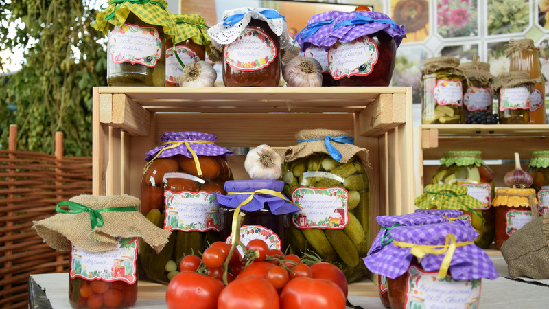 Бу күргәзмәдә нәрсә генә юк: яшелчә һәм җиләк – җимеш проектлары, консервалар, төрле ризыклар – барысы да матур итеп ясалган.