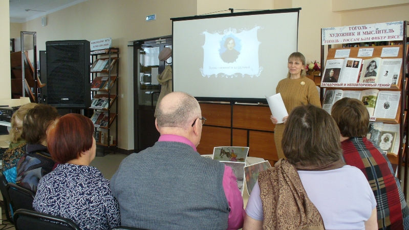 Китапханәче Г. Хәсәнова Николай Васильевич Гогольнең дөньяга язучы, шагыйрь, драматург, публицист һәм тәнкыйтьче буларак билгеле булуы турында сөйләде.