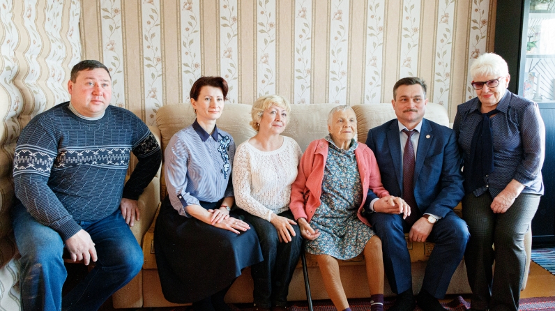 Район башлыгы аны икеләтә бәйрәм белән котлады Екатерина Ивановна Россия Президенты Владимир Путинның котлау сүзләрен игътибар белән тыңлады, Марат Галимҗанович аңа укыды һәм рәхмәт әйтеп тә тормады: «рәхмәт, онытмадылар!».