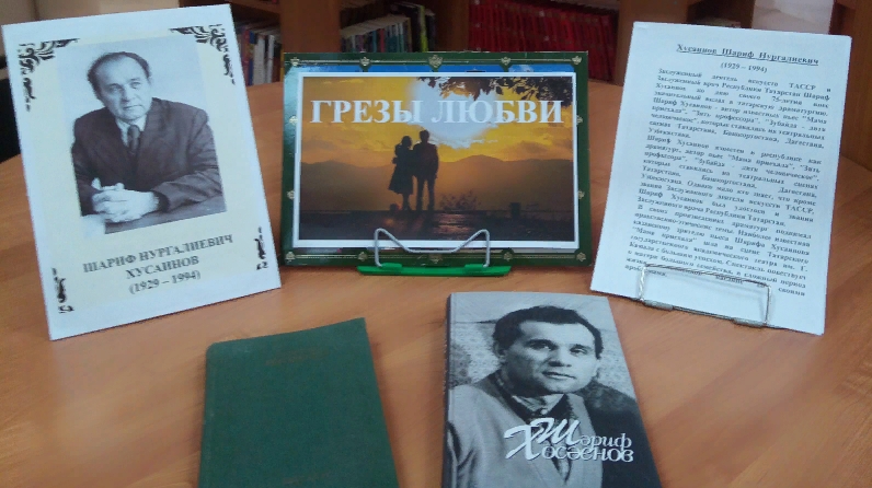 Драматург Шәриф Хөсәеновның юбилей датасына багышлап район үзәк китапханәсендә Китап укучылар игътибарына «мәхәббәт яшьләре» исемле китап киштәсе тәкъдим ителде, анда аның тормыш юлы һәм иҗаты белән танышырга мөмкин.