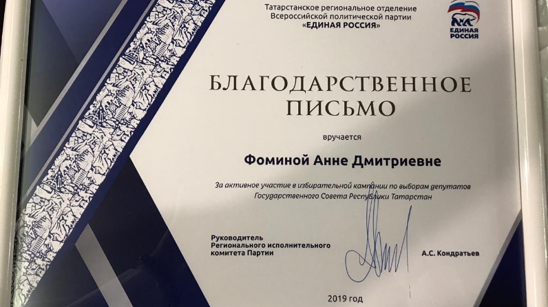 2019 елның 14 ноябрендә Мәскәүдә Үзәк штабта «Бердәм Россиянең Яшь Гвардиясе» бөтенроссия иҗтимагый оешмасы активы белән «Бердәм Россия» Бөтенроссия сәяси партиясе Рәисе Дмитрий Анатольевич Медведев очрашты.