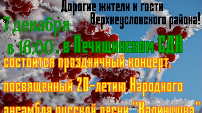 Барыгызны да 7 декабрь көнне 16.00 сәгатьтә Печище Мәдәният йортында көтеп калабыз.