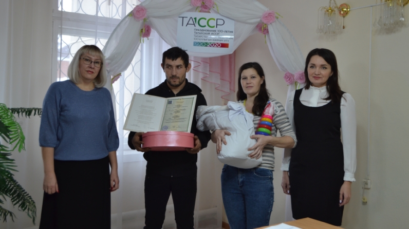 Югары Ослан муниципаль районында 2020 нче елда Тимофеевлар Андрей һәм Ирина гаиләсендә беренче бала 3820 гр авырлыктагы малай булды. ГХАТ бүлеге җитәкчесе Наталья Кадыйрова бәхетле ата-аналарны чын күңелдән котлады, беренче дәүләт документын - туу турында таныклыкны, Татарстан Республикасы Президенты Рөстәм Миңнеханов исеменнән котлау адресын һәм уенчык тапшырды.