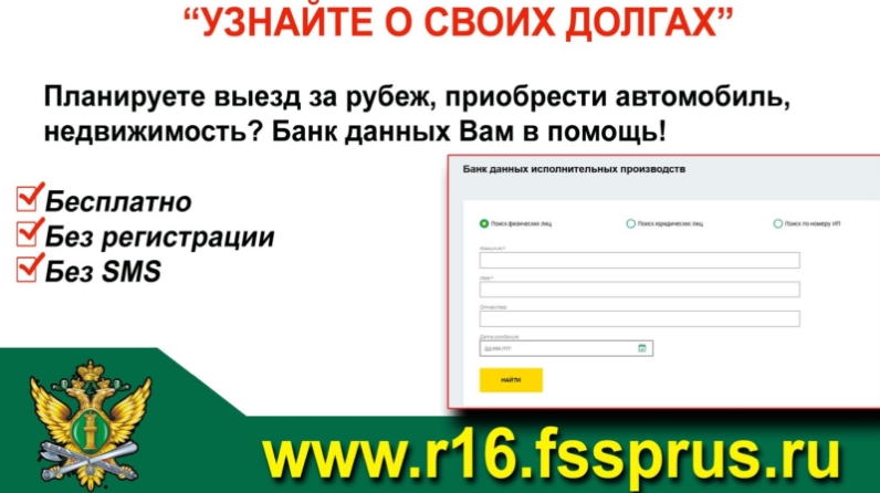 Суд приставларының федераль хезмәте башкарма производстволарның мәгълүматлар банкында үзләрен тапкан гражданнарга һәм юридик затлар вәкилләренә дәүләт хезмәтләре Порталы аша бурычларны түләргә яки түләү өчен квитанция алырга һәм бастырып чыгарырга тәкъдим итә.